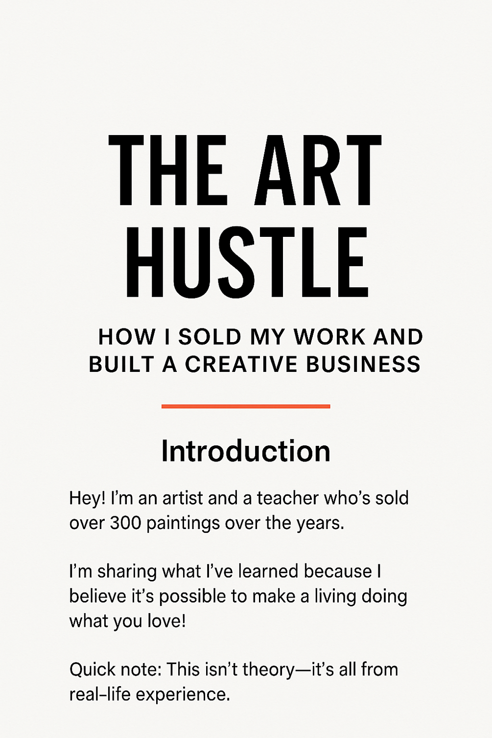 The Art Hustle is the step-by-step playbook I wish I’d had when I started—part inspiration, part how-to manual, 100% artist-friendly. After selling 300+ paintings, landing a single $14 K commission, and teaching thousands of students, I distilled everything I’ve learned into this approachable, no-fluff guide.